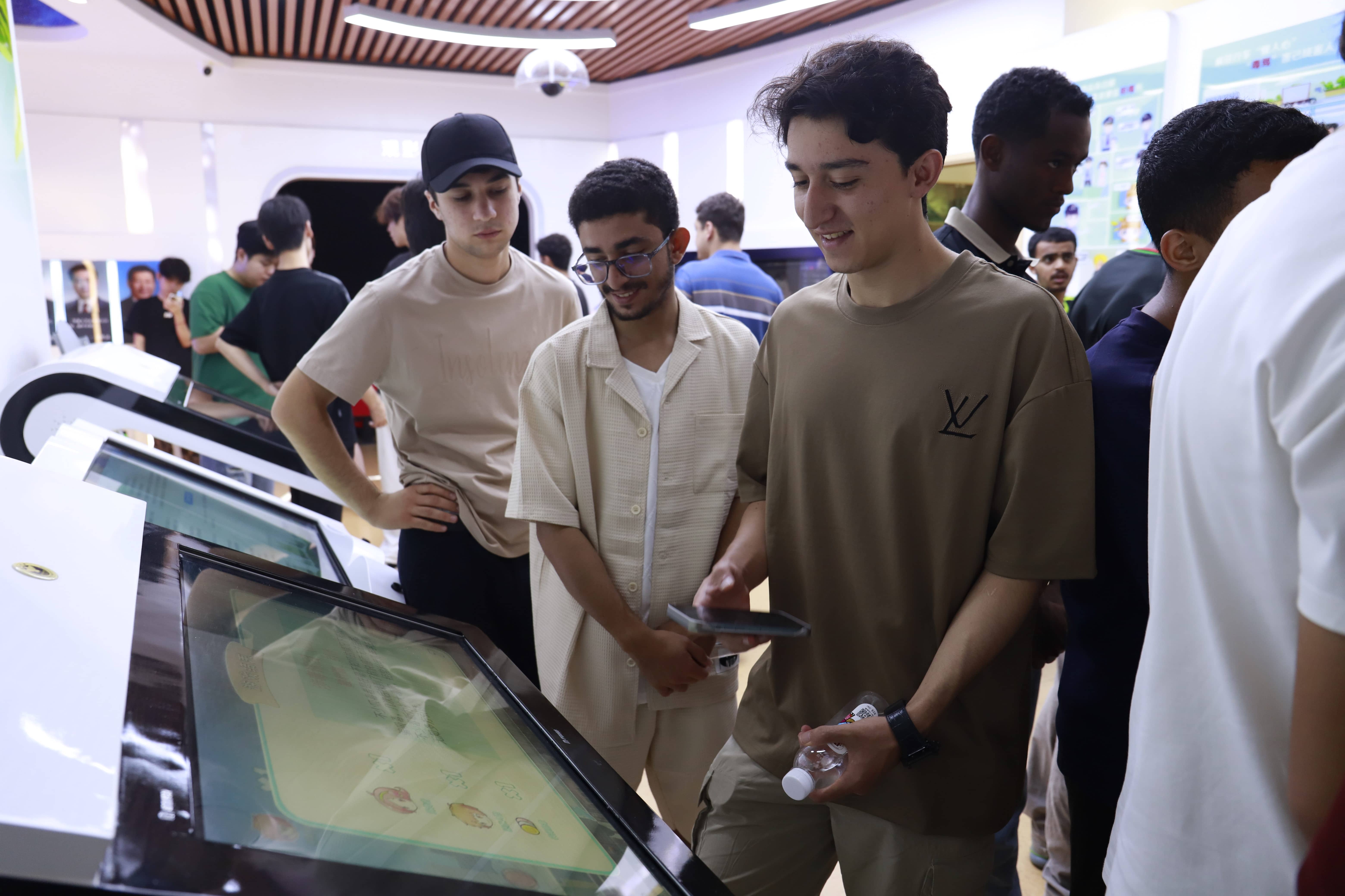 在基地专业讲解员的引导下,中外学子依次参观了禁毒历史长廊、仿真毒品展示区、吸毒后果警示区以及高科技互动体验区等多个展项。逼真的实物模型、触目惊心的真实案例,给学生们带来了极大的视觉冲击和心灵震撼,使他们对毒品的巨大危害有了更为直观和深刻的认识。随后,国际语言生们体验了有趣的禁毒小游戏,在游戏中进一步加深对毒品知识的理解和记忆。同时,VR体验让大家身临其境般感受到毒品带来的危害,这种沉浸式的体验方式让禁毒教育更加深入人心。