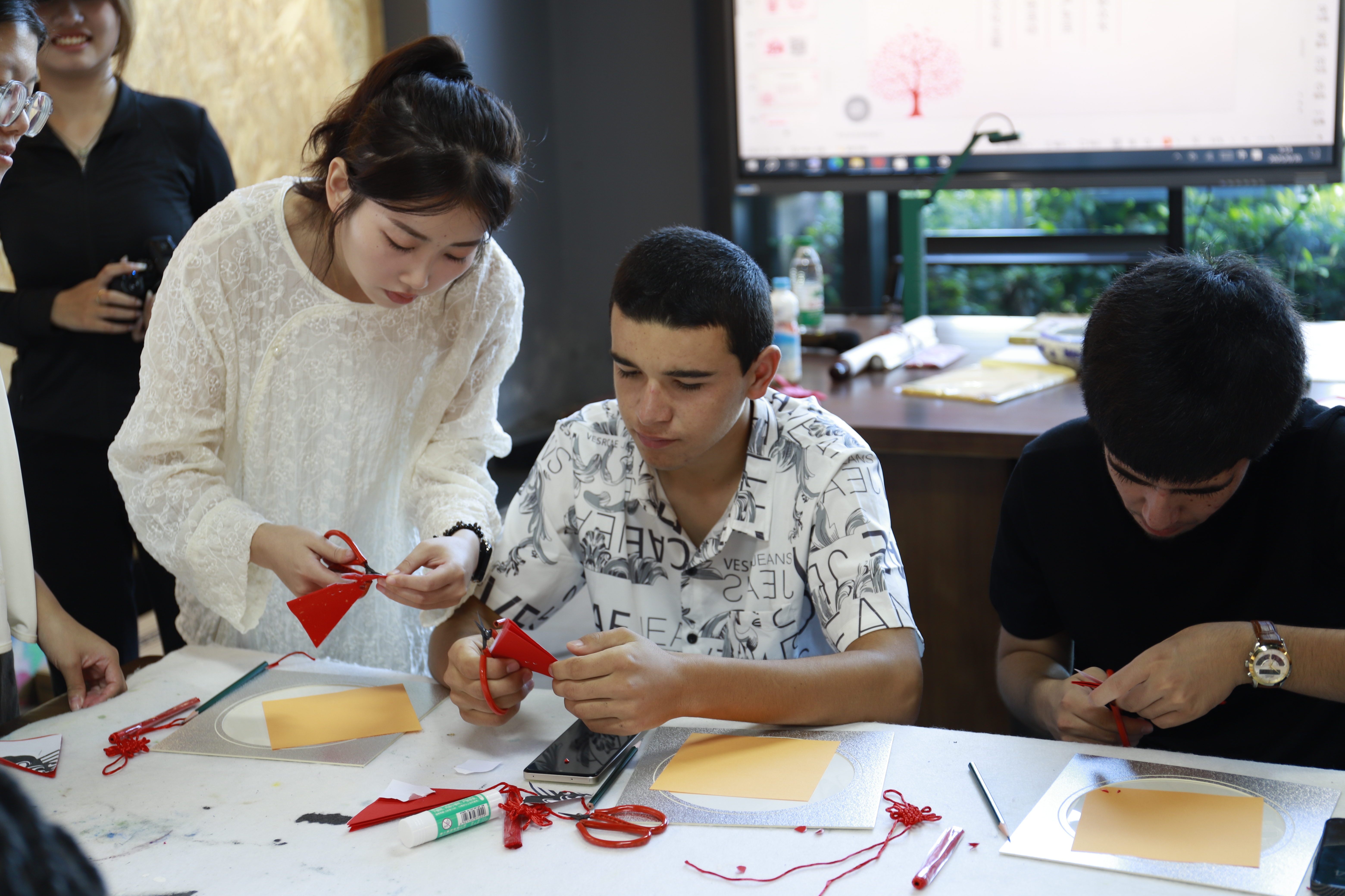 巧手筑梦剪纸社学员协助指导