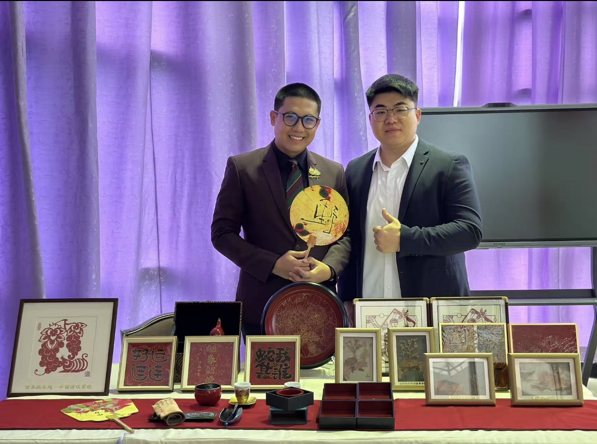 现场同时展出的31件非遗精品涵盖福州脱胎漆器、剪纸、软木画等门类,件件凝聚匠心,淋漓尽致地呈现了传统工艺的极致之美。我校国际交流合作中心教师全程通过提供讲解,与评委、选手及观众深度互动,阐释非遗技艺与文化内涵,成功搭建起中泰文化交流的坚实桥梁。有力印证了我校链接大师资源、推动非遗融入现代教育的创新实践。