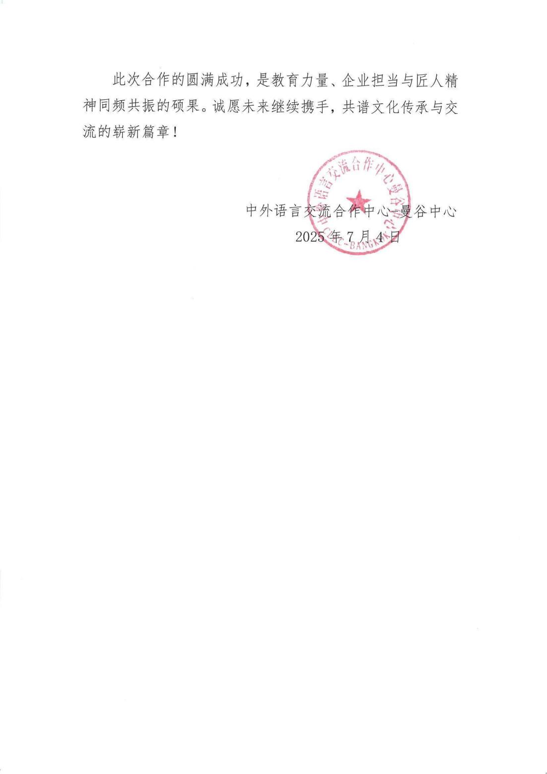 中外语言交流合作中心-曼谷中心感谢信
