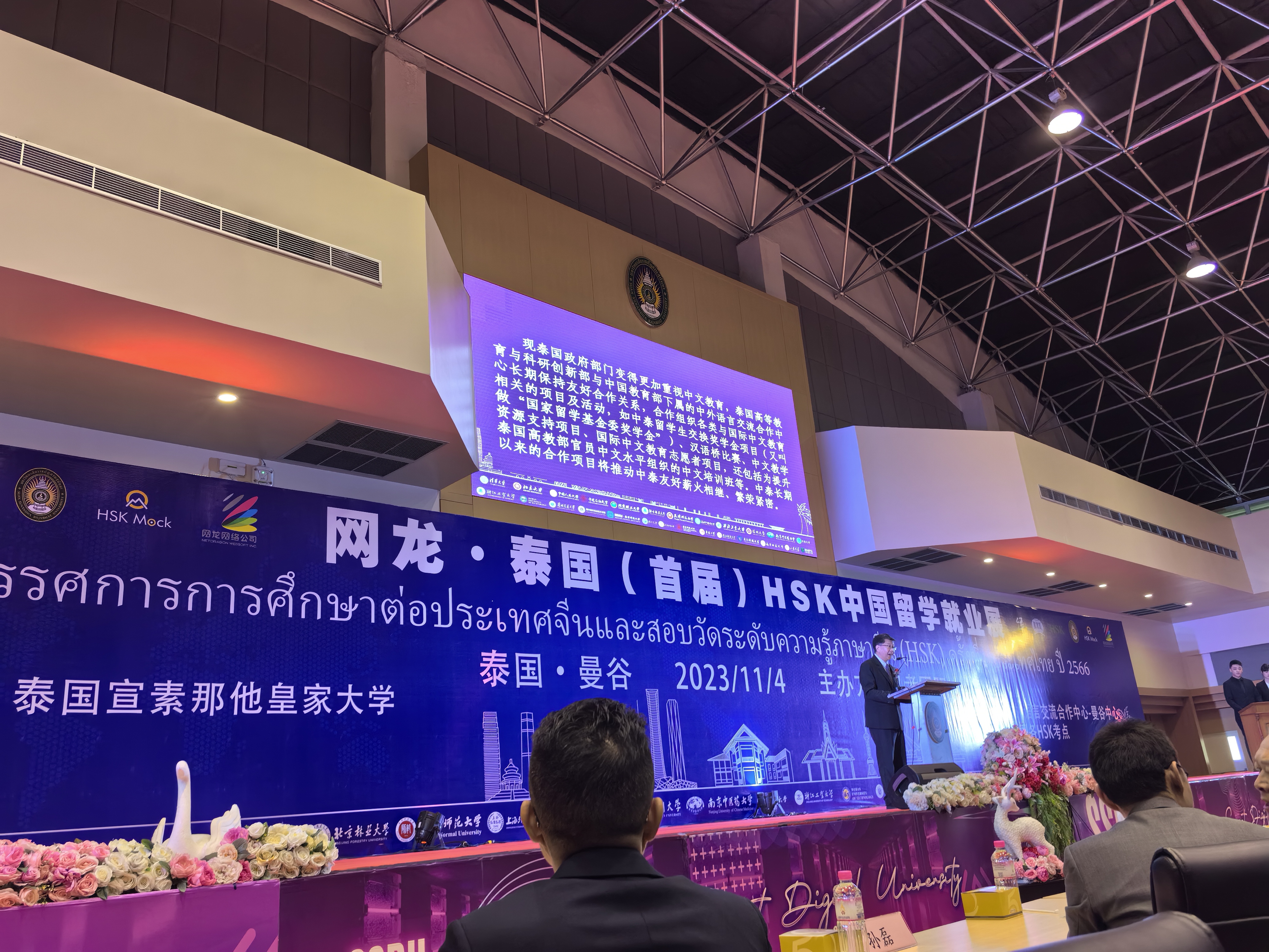 此次泰国HSK中国留学就业展是由中国教育部中外语言交流合作中心主办的一项国际性、综合性教育展,旨在为泰国及国际学生提供一个赴中国留学、就业的交流和咨询平台,由网龙-福软全程冠名赞助。