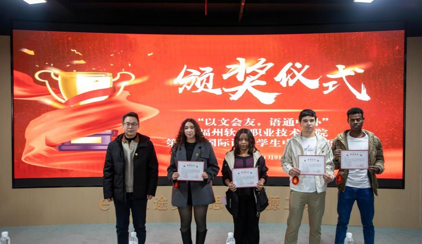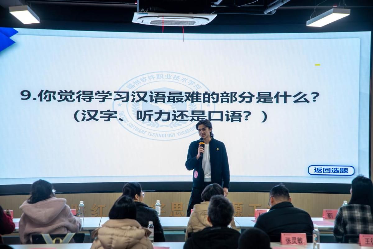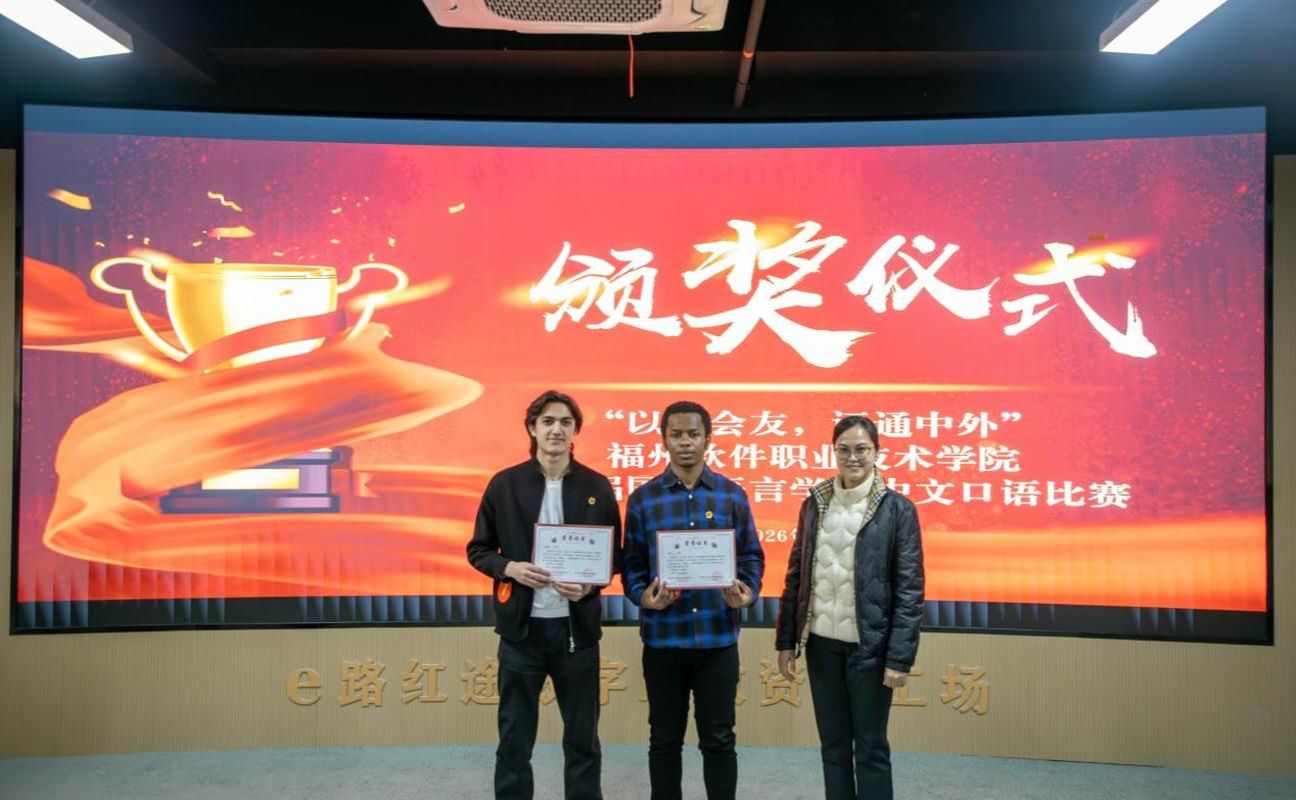 1 月 9 日上午,福州软件职业技术学院通识教育中心与国际学院联合主办的 “以文会友,语通中外” 首届国际语言学生中文口语比赛在我校思政工坊举行。校党委常务副书记林莺、副校长邹莉莉、校长助理柯建琳、通识教育中心及国际学院有关老师莅临现场指导,来自初级班、中级班的 12 名优秀选手同台竞技,展现中文学习风采。