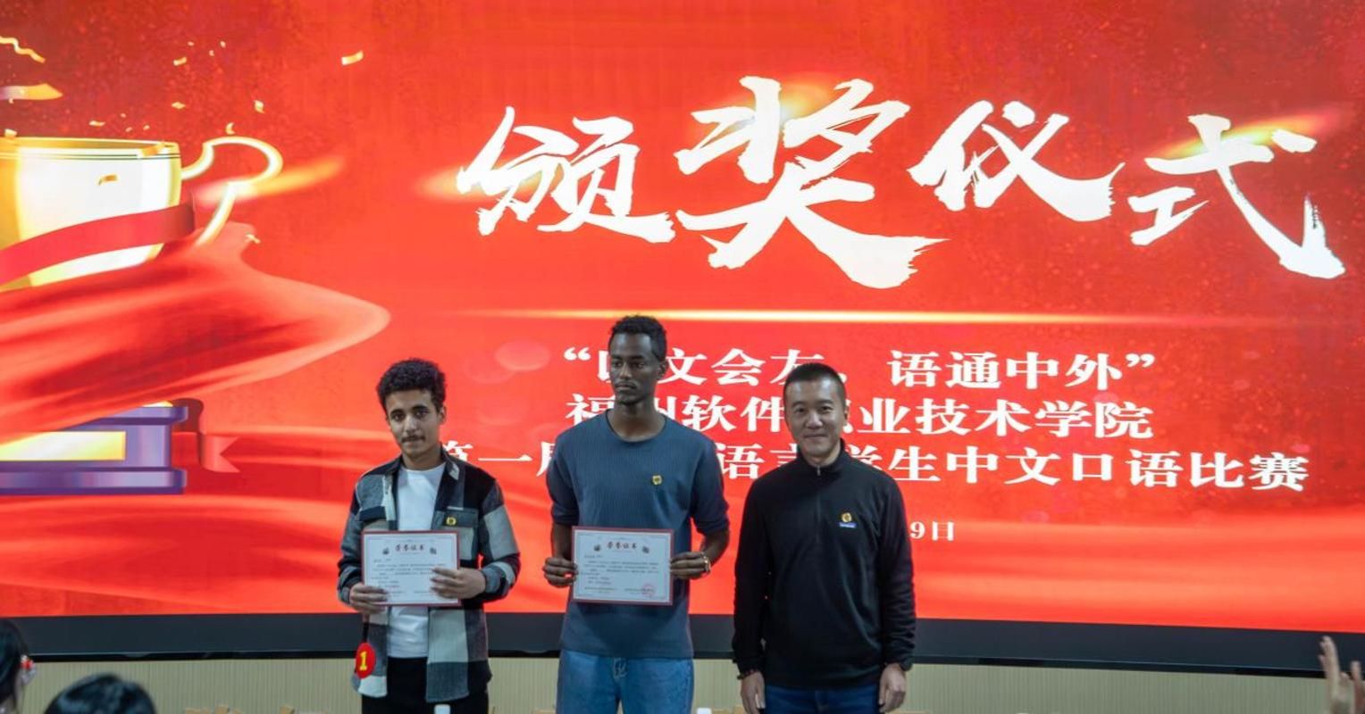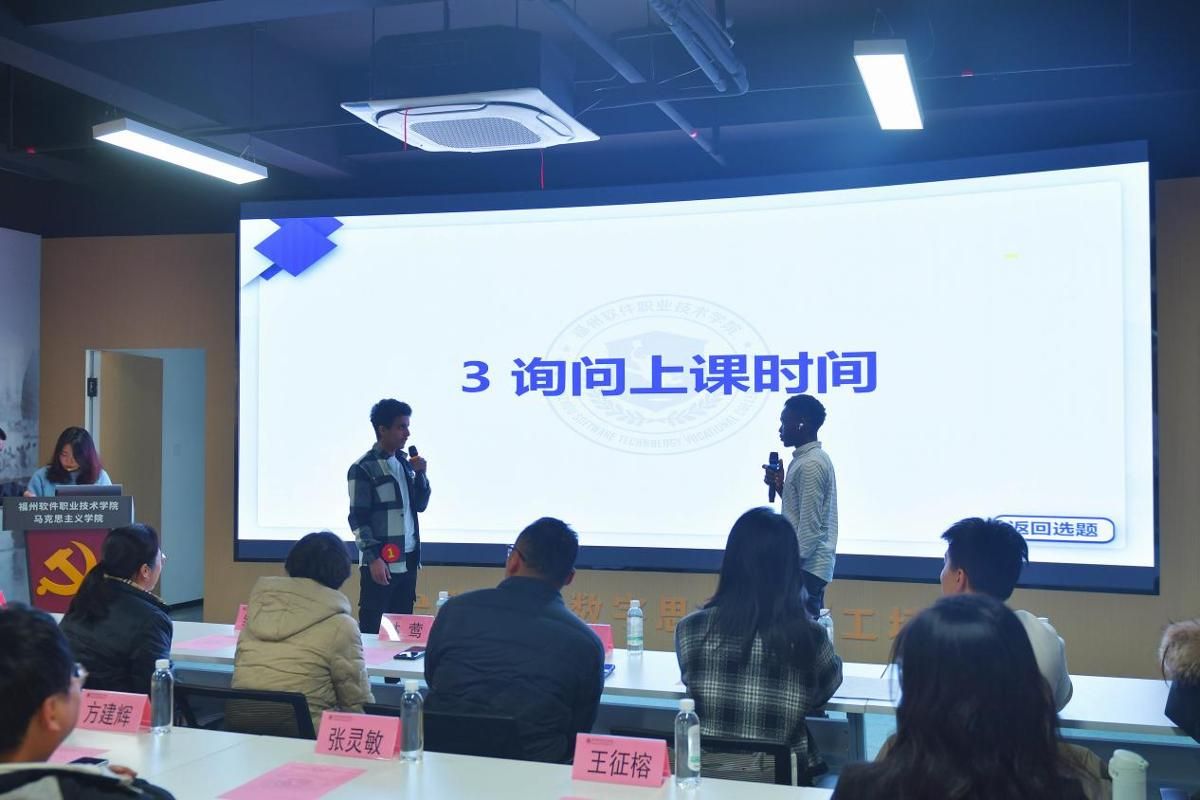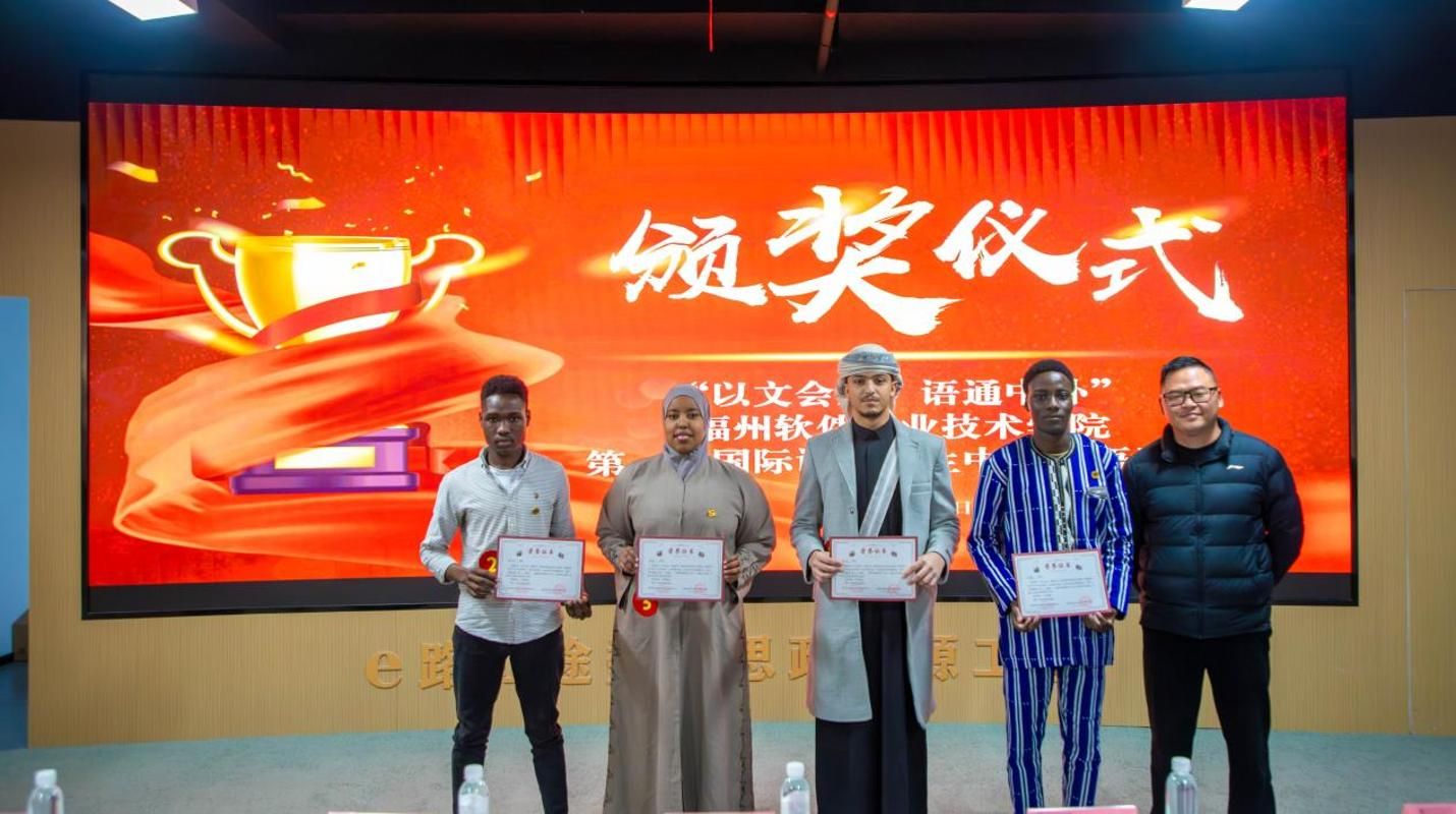 1 月 9 日上午,福州软件职业技术学院通识教育中心与国际学院联合主办的 “以文会友,语通中外” 首届国际语言学生中文口语比赛在我校思政工坊举行。校党委常务副书记林莺、副校长邹莉莉、校长助理柯建琳、通识教育中心及国际学院有关老师莅临现场指导,来自初级班、中级班的 12 名优秀选手同台竞技,展现中文学习风采。